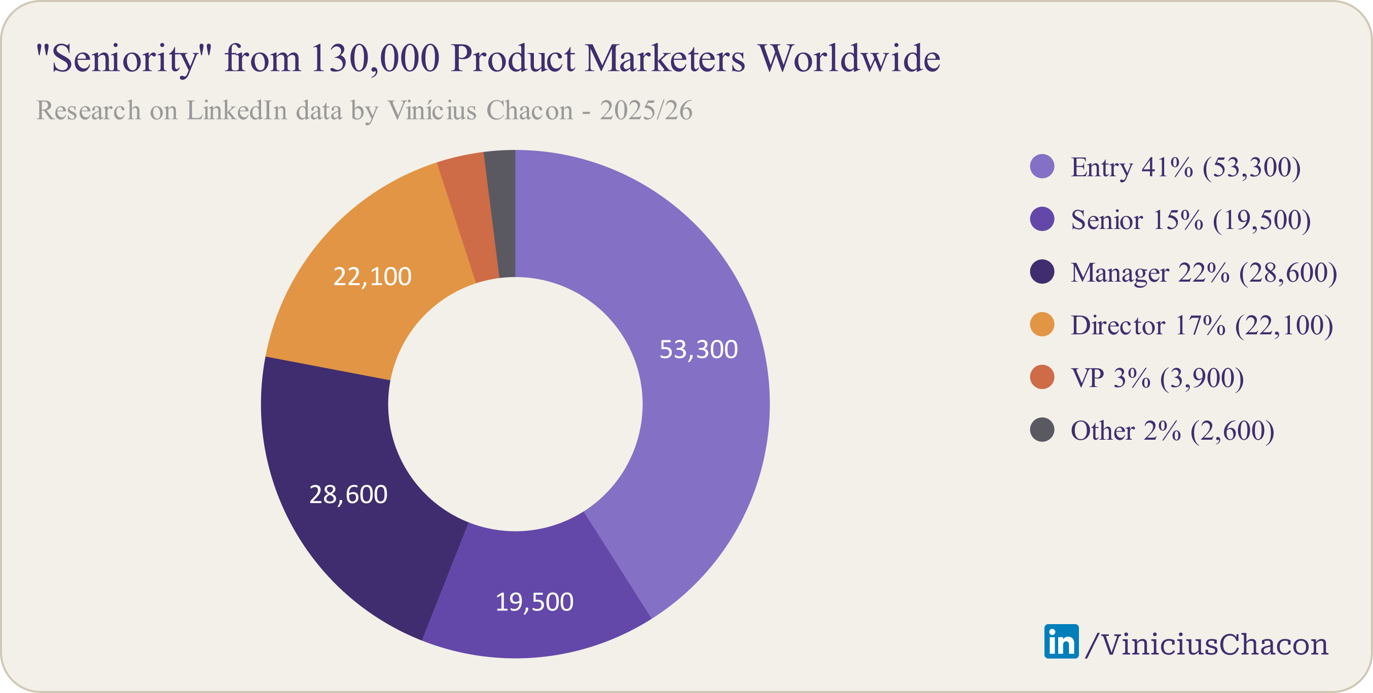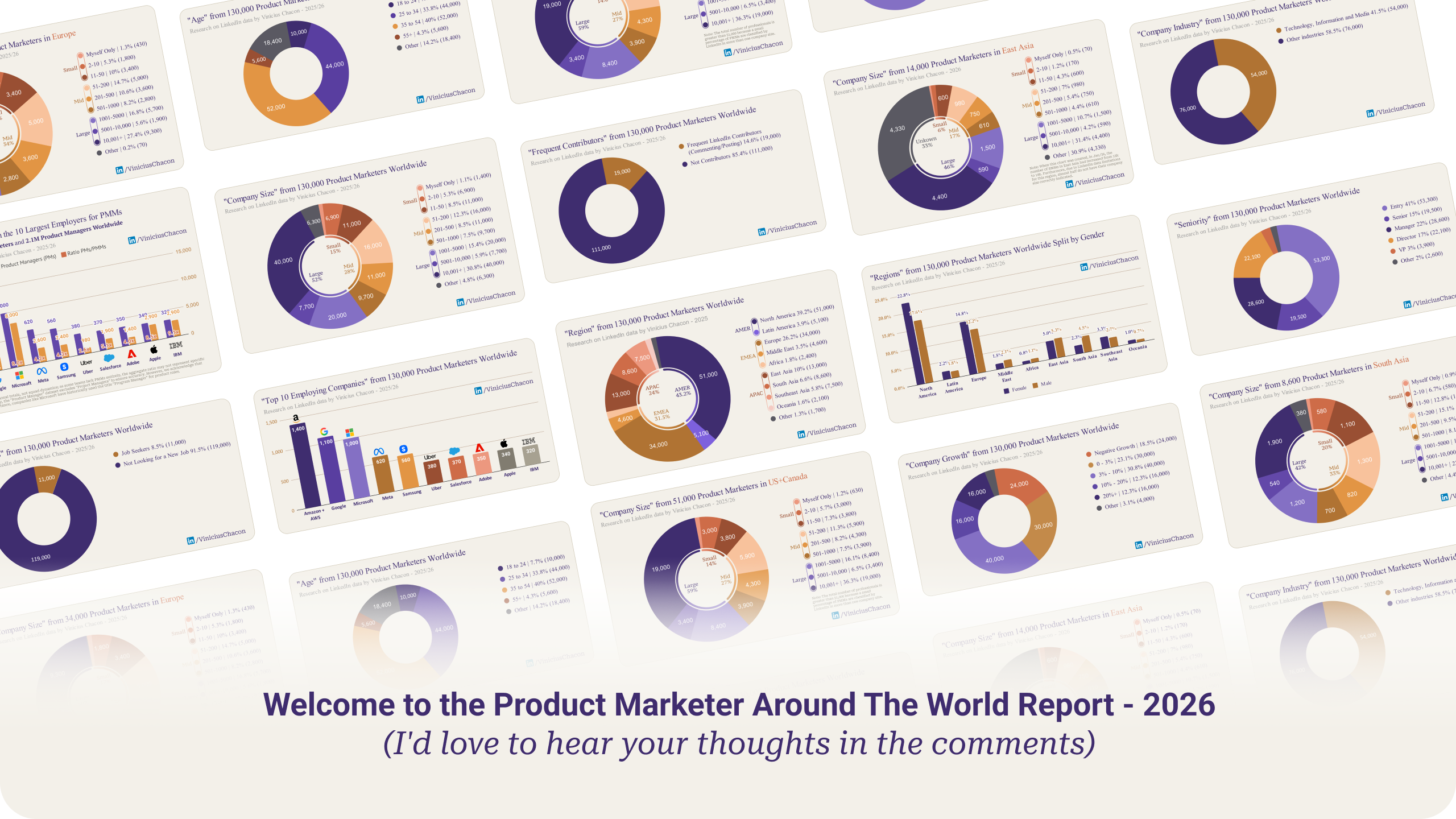 This report is the result of around 70 hours of hard work manually extracting data from LinkedIn’s database of 1.3 billion users, analyzing the data, discussing it with PMMs from different countries, and plotting it in beautiful graphs.
