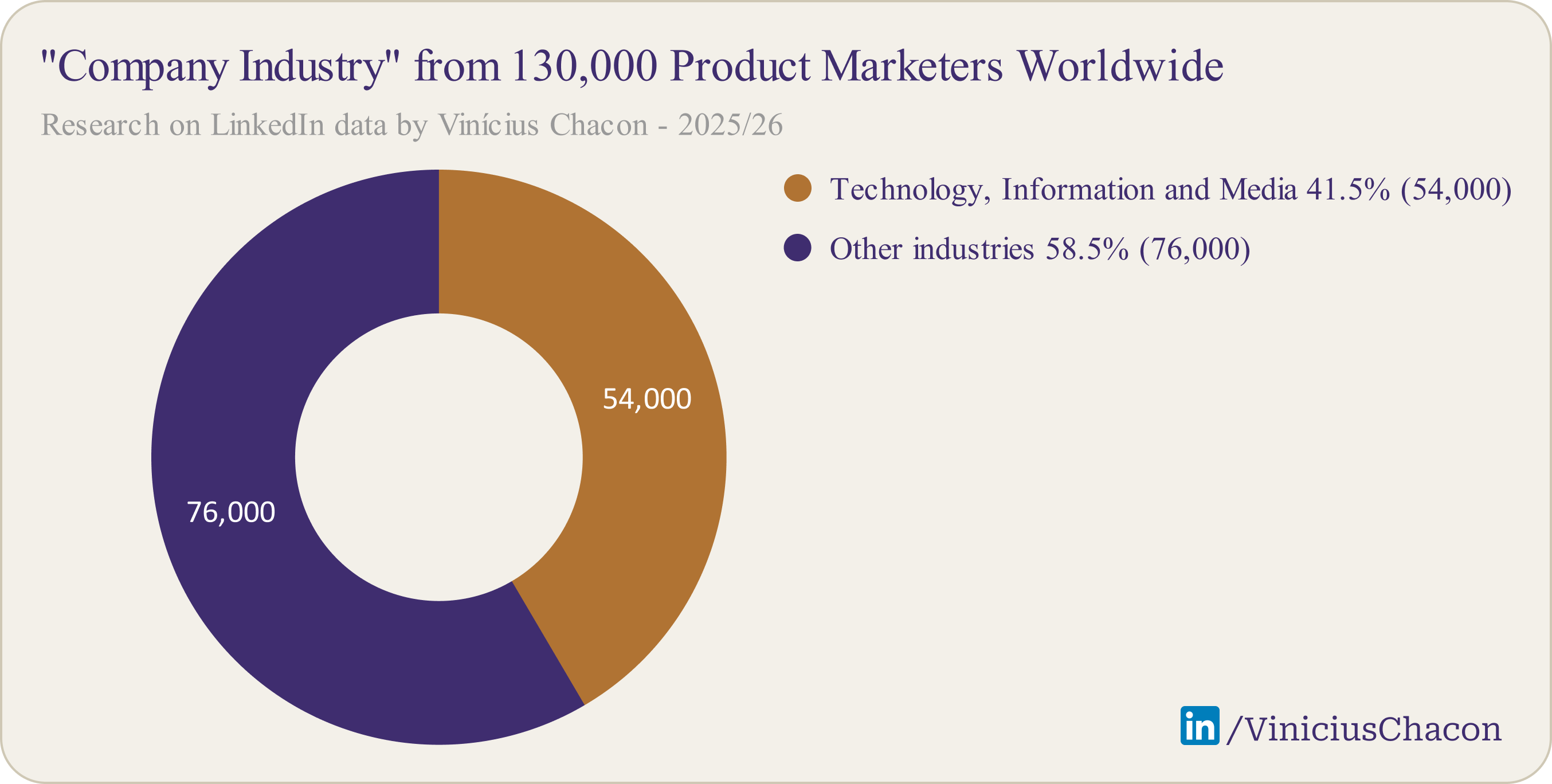 The data confirms the stereotype: 41.5% of Product Marketers work in “Technology, Information, and Media.” To put that dominance in context, the average for all LinkedIn users in this sector is just 14.5%.