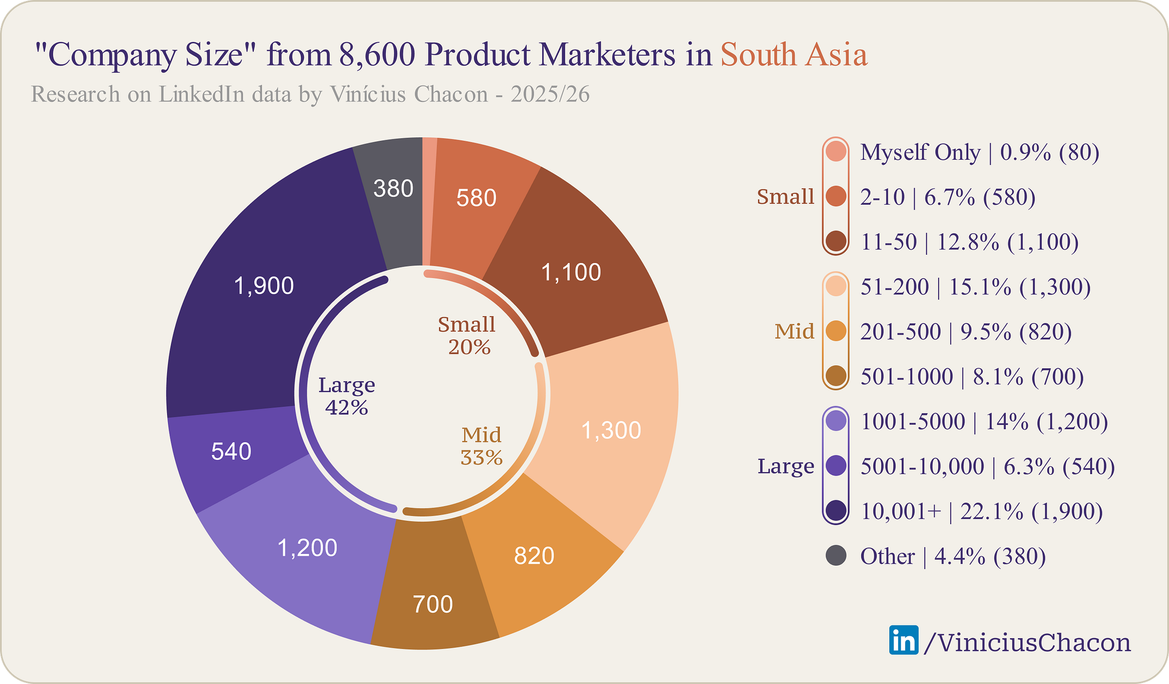India is the undisputed engine of this region, home to 7,300 PMMs (85% of the total), followed distantly by Bangladesh (~610) and Pakistan (~590). What makes this market unique is its distribution: 20% of PMMs work in small companies.