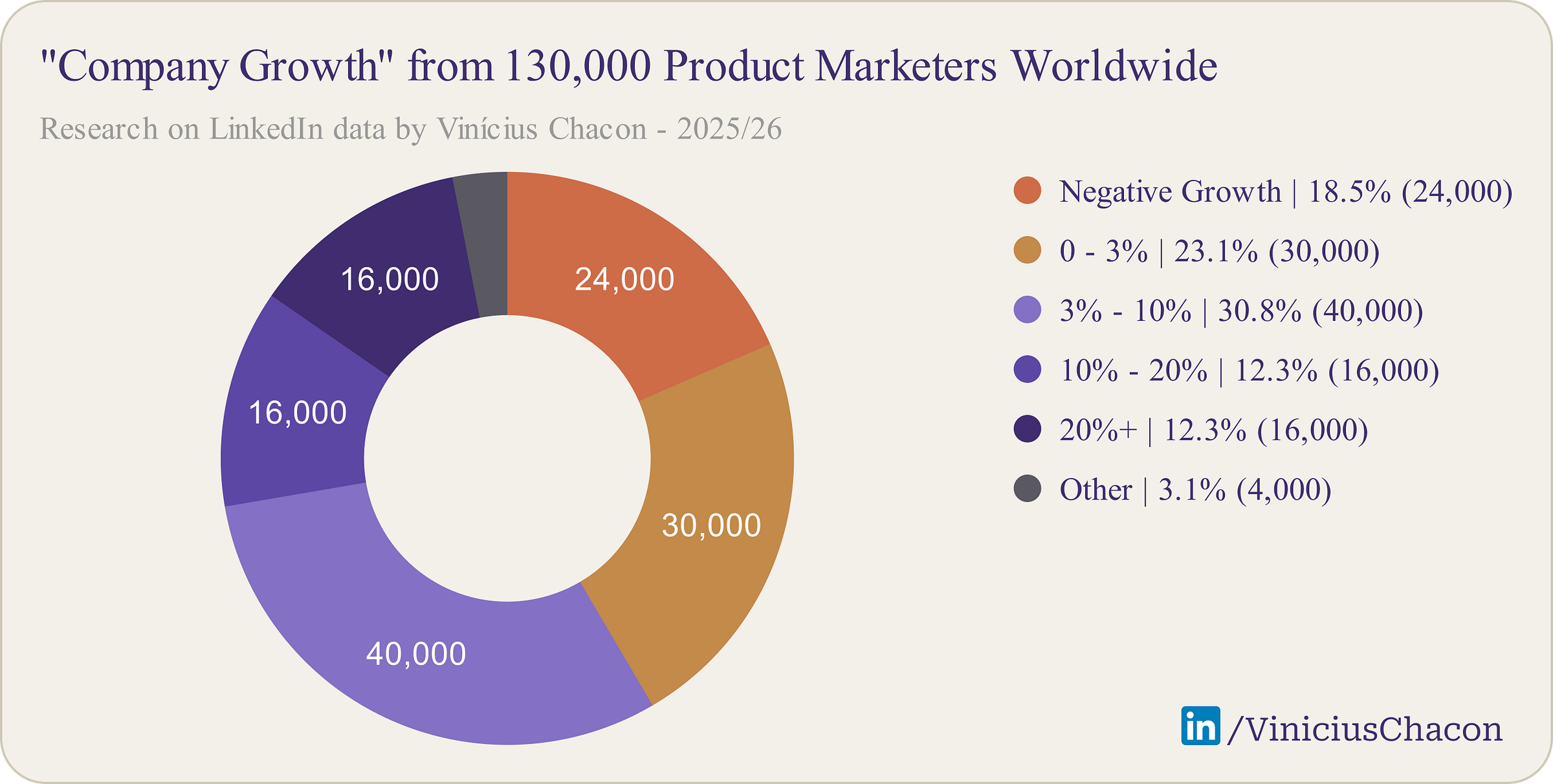 However, if we consider only the 40% as a sample, ignoring the 60% without available data, we have the overall growth data for companies on LinkedIn in the following dimensions: