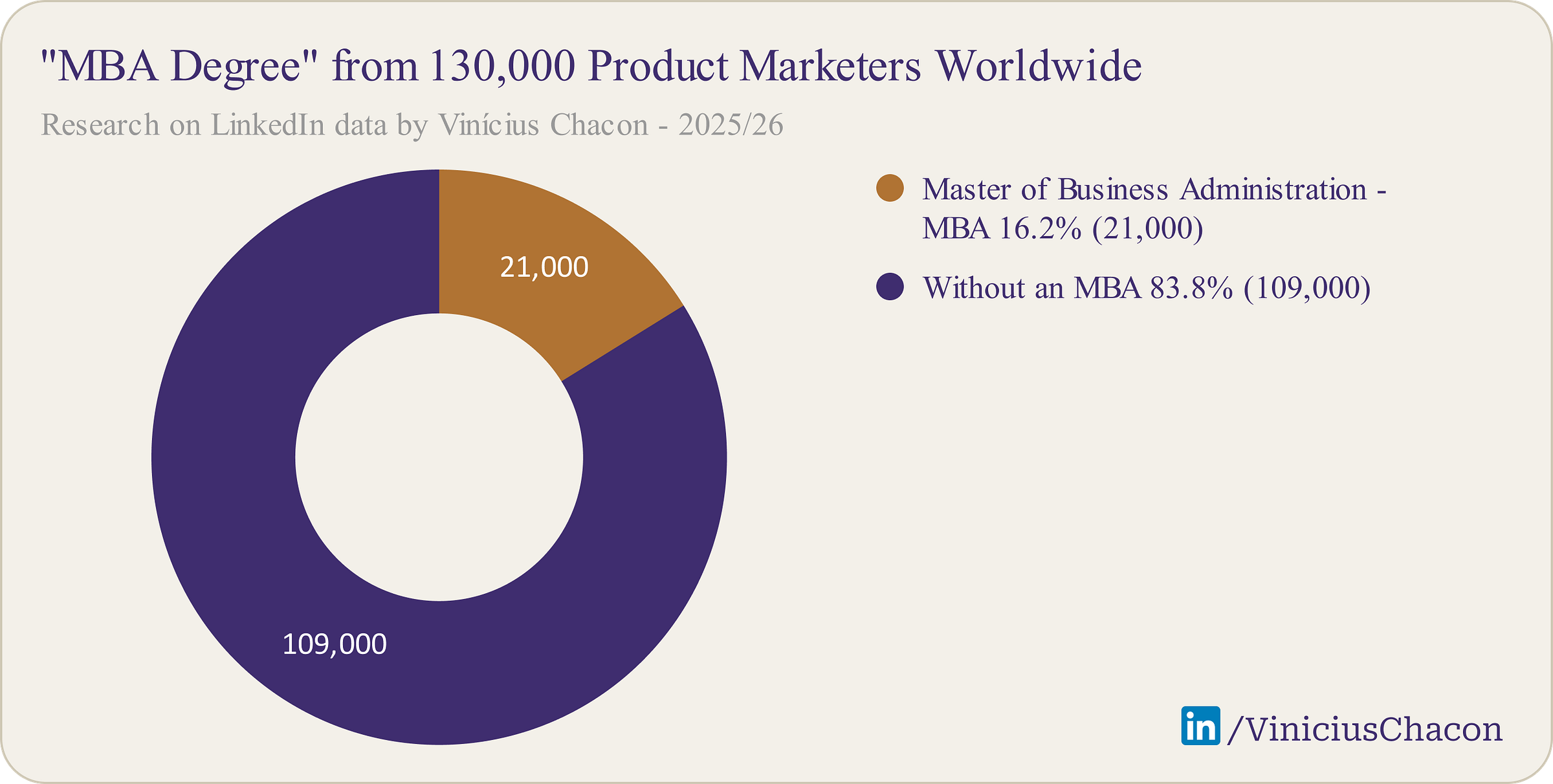 Product Marketers (130k PMMs): 16.2% hold an MBA.