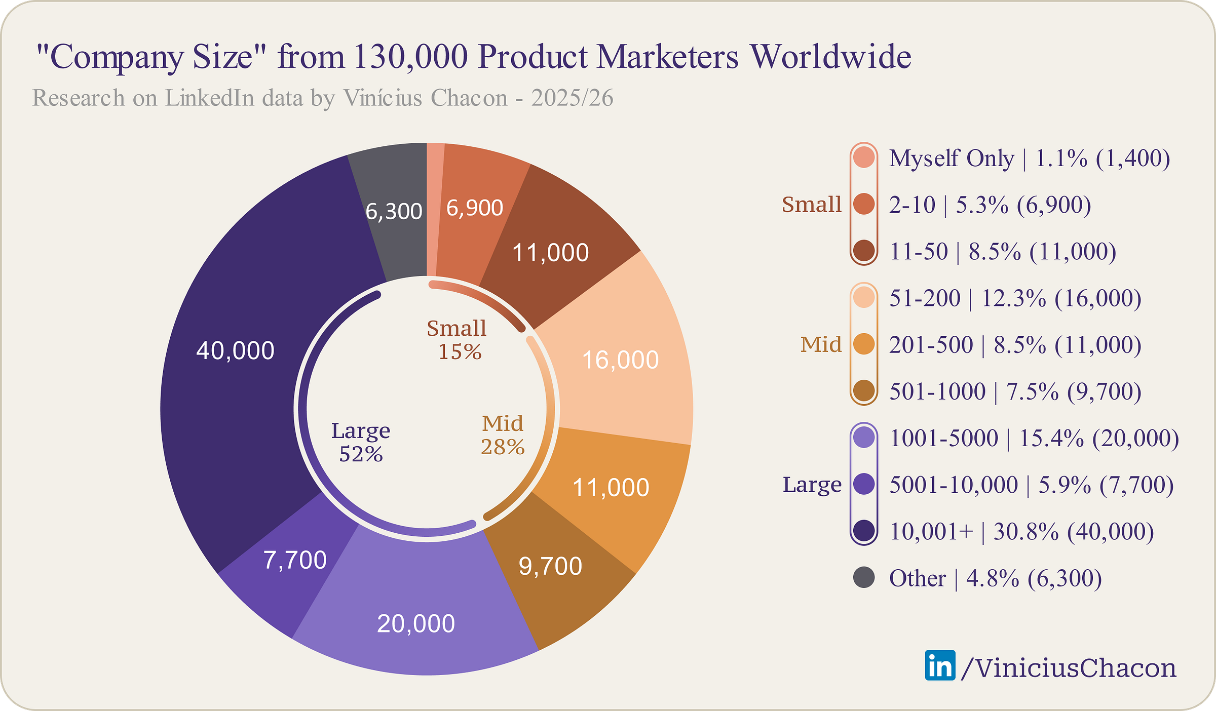 Contrary to the “scrappy startup” image often associated with tech roles, the majority of PMMs gravitate toward large organizations.